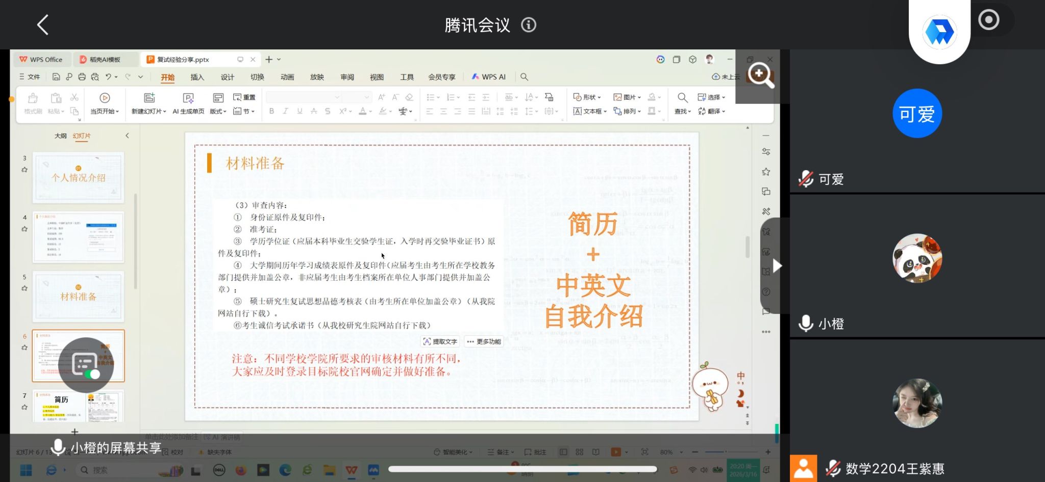 特邀庞诗卉、王晓雨、程政三位优秀学长学姐,举办线上考研复试经验分享会。分享会围绕复试筹备、答题技巧、临场应变等核心内容展开,为复试冲刺阶段的同学提供系统、实用的指导。